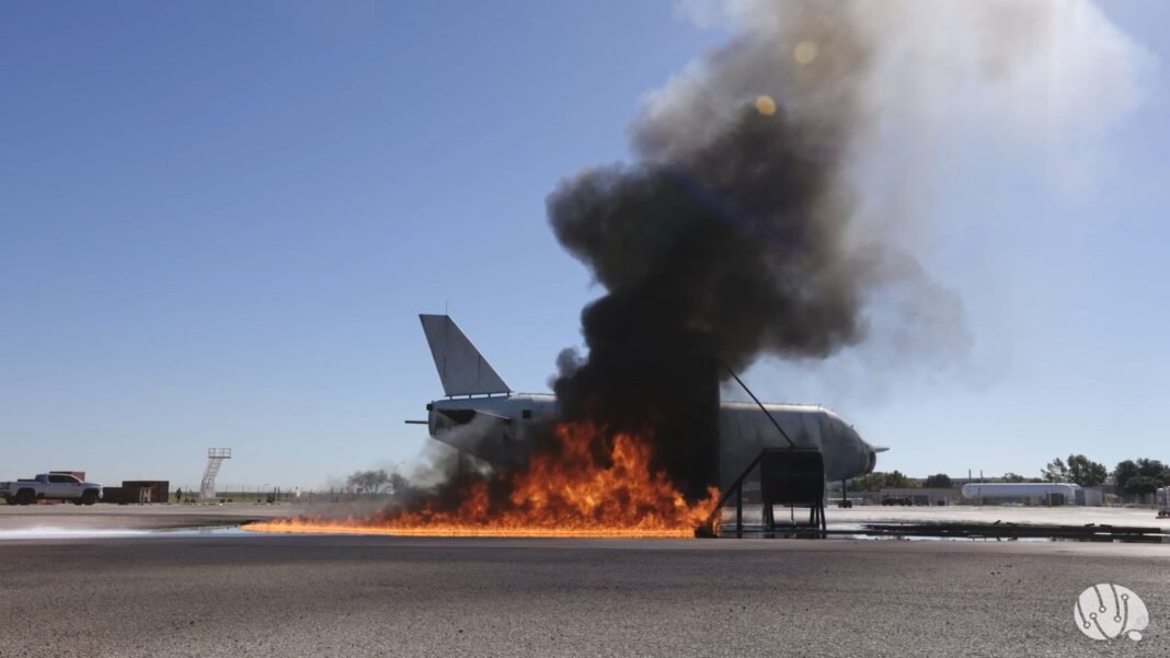 Colossus, el robot bombero que apaga un avión en llamas