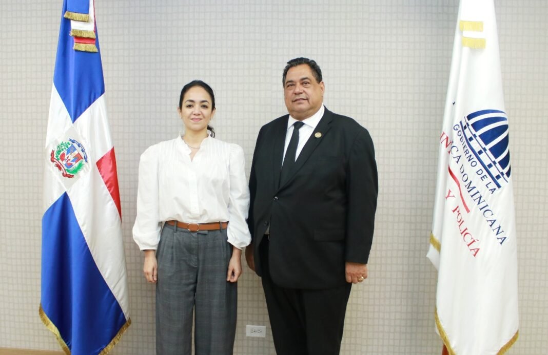 La ministra de Interior y Policía, Faride Raful, y el presidente del Colegio de Notarios, Jhon Richard Paniagua Feliz, luego del encuentro / Fuente externa