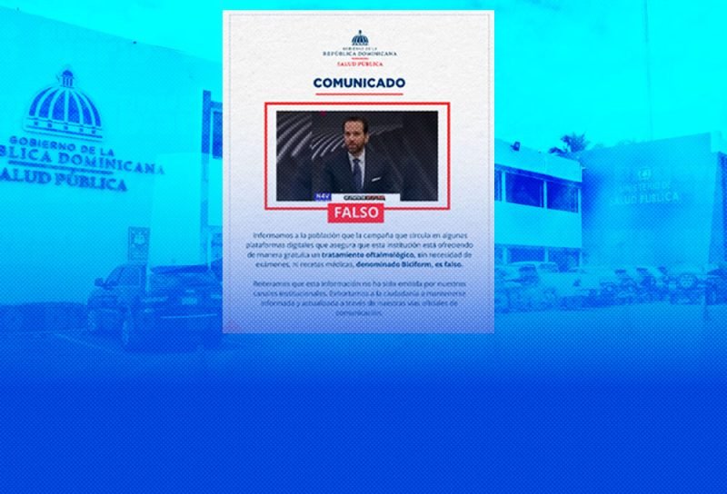EL NUEVO DIARIO, SANTO DOMINGO.- El Ministerio de Salud Pública alertó este martes a la ciudadanía sobre la circulación en redes sociales de una campaña falsa que asegura que la institución ofrece de manera gratuita un supuesto tratamiento oftalmológico denominado Biciform.