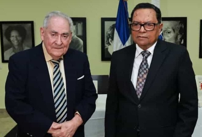 El periodista Ubi Rivas, a la izquierda, y el director de la Biblioteca Nacional, Rafael Peralta Romero