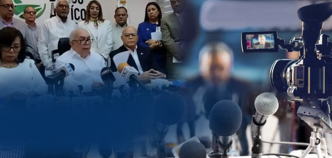 Una batería de periodista y sus medios en cobertura de rueda de prensa. (Fuente externa).